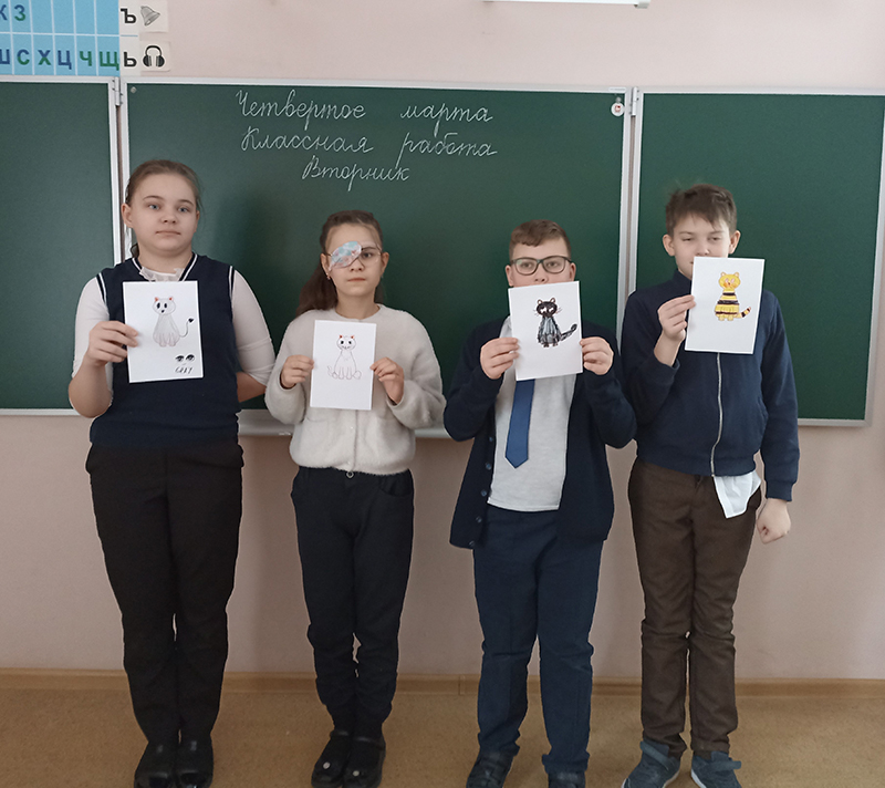 Школьникам рассказали о происхождении и одомашнивании кошки, о самых известных породах, об отличии кошки от других домашних питомцев, о том, какую пользу эти животные приносят людям. Дети поделились своим мнением о том, как нужно беречь пушистиков, рассказали о повадках своих любимцев. Ребята поучаствовали в конкурсах, ответили на вопросы кошачьей викторины, вспомнили сказки и рассказы, где главными героями являются кошки, и сделали аппликацию «У меня есть славный кот».