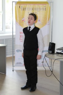 Михаил Афанасьев, неоднократный победитель поэтических конкурсов, проходивших в библиотеке, приготовил свой приз за лучшее прочтение стихов и вручил его учащемуся школы №10 г. Рязани Александру Фасту. Стихотворение, с душой прочитанное Михаилом, стало настоящим подарком для всех присутствующих.