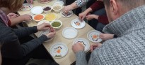 Татьяна Симакова рассказала, что такое счастье с точки зрения психологии, как повысить ощущение счастья, и предложила участникам встречи нарисовать картину радости, используя семечки тыквы и подсолнуха, бобы и чечевицу.