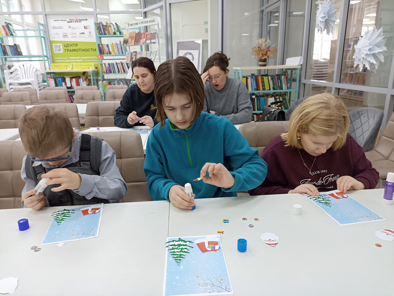Приближается Новый год – праздник сюрпризов, поздравлений, волшебства и ожидания чуда. Это время, которое можно провести интересно: приготовить своими руками подарки для близких и друзей, придумать новогодние поздравления. Маленькие читатели узнали много нового об истории празднования Нового года на Руси, о главном волшебнике страны – Деде Морозе, который живет в Великом Устюге, в красивом тереме, а дойти до него можно по сказочным тропам. Школьники поучаствовали в веселых конкурсах, разгадали загадки, ответили на вопросы викторины и поделились рассказами о том, какие подарки они ждут от Деда Мороза. Сделанные своими руками открытки ребята подарят своим родным и близким в дни новогодних праздников.
