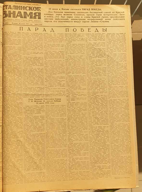 Соответственно, в трех номерах «Сталинского знамени» (№№ 123–125 за 24 – 27 июня 1945 года) публиковалась информация, касающаяся проводимого 24 июня 1945 года парада.