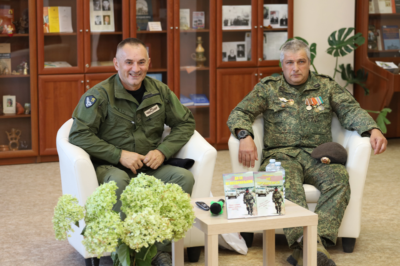 Гостем презентации стал соотечественник автора, член Всероссийской общественной организации ветеранов «Боевое братство», участник специальной военной операции Раде Цветкович. Он подчеркнул, что воинское братство – это не только общее дело в выполнении боевой задачи, это надежное плечо товарища, который поддержит и в бою, и в обычной жизни. Это семья, которую послала судьба.