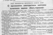 1 ноября исполняется 75 лет со дня вручения первого звания «Мать-героиня». Впервые оно было присвоено 27 октября 1944 года четырнадцати женщинам. Награду вручал в Кремле Михаил Иванович Калинин.
