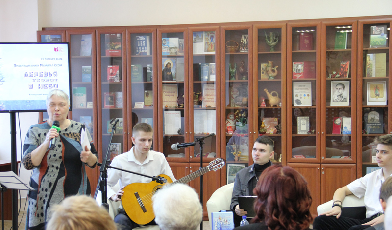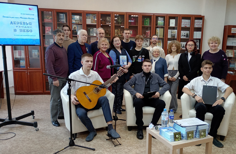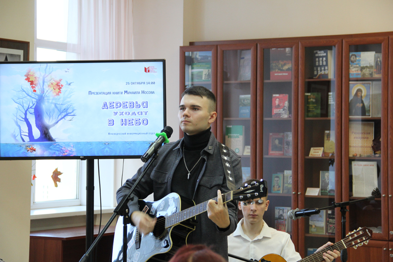 В библиотеке состоялась презентация книги Михаила Носова «Деревья уходят в небо». Михаил Носов – поэт, музыкант, выпускник Рязанского колледжа электроники, член литературного актива Рязанского регионального отделения Союза писателей России. Михаилу двадцать два года, стихи пишет с детства. Несмотря на молодой возраст у поэта сформировался яркий творческий почерк, он пишет актуальные и социально ориентированные стихотворения, предпочитая короткую строку, нестандартные рифмы и «ударный» ритм.