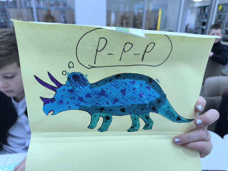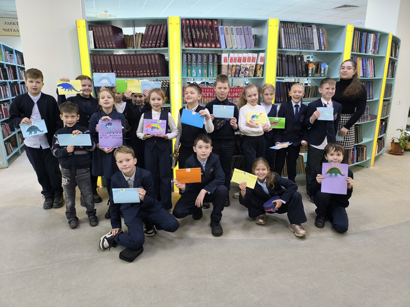 Для учащихся начальных классов гимназии № 2 в рамках Недели палеонтологии в «Горьковке» был организован увлекательный мастер-класс по созданию открытки «Динозавры на ладошке».