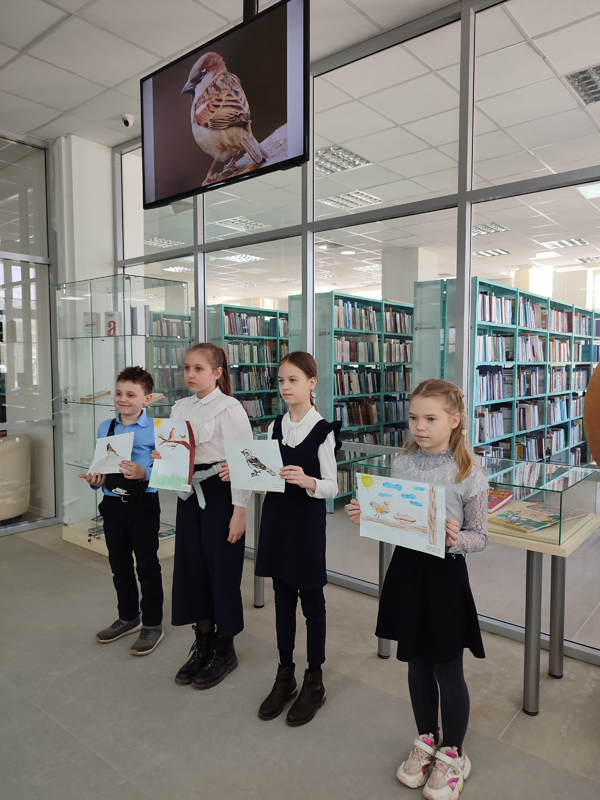 Гостями библиотеки сегодня стали учащиеся школы №43, которые посетили экологическое мероприятие, посвященное домовому воробью – птице 2022 года.