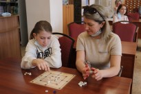 В этот же день состоялась экскурсия по выставке и мастер-класс по средневековой настольной игре по билетам, приобретенным в рамках платных услуг библиотеки.