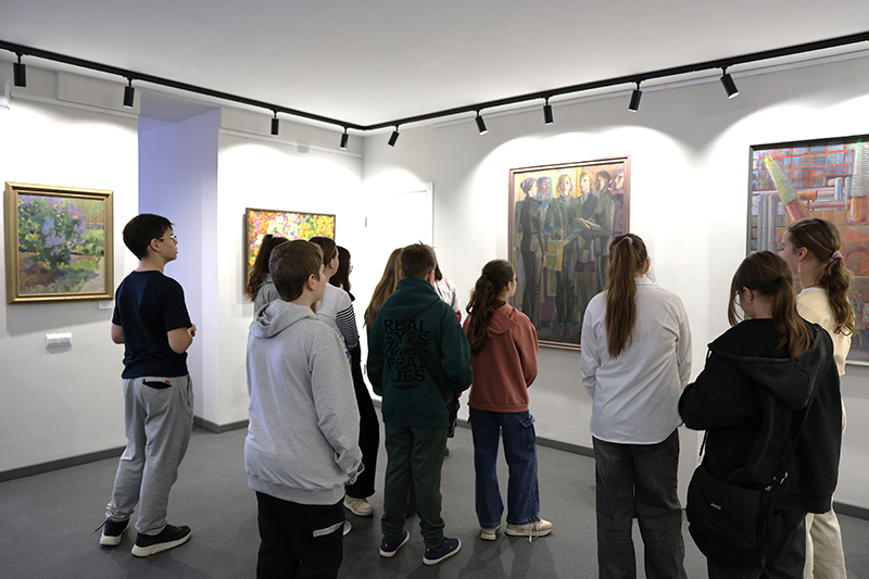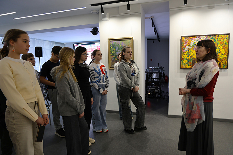 В концертно-выставочном зале Школы креативных индустрий (ШКИ) состоялась экскурсия по выставке «Постоянство памяти или трансформация». Куратор Марина Алексеевна Абрамова провела экскурсию по действующей экспозиции для обучающихся ШКИ студии «Дизайн».