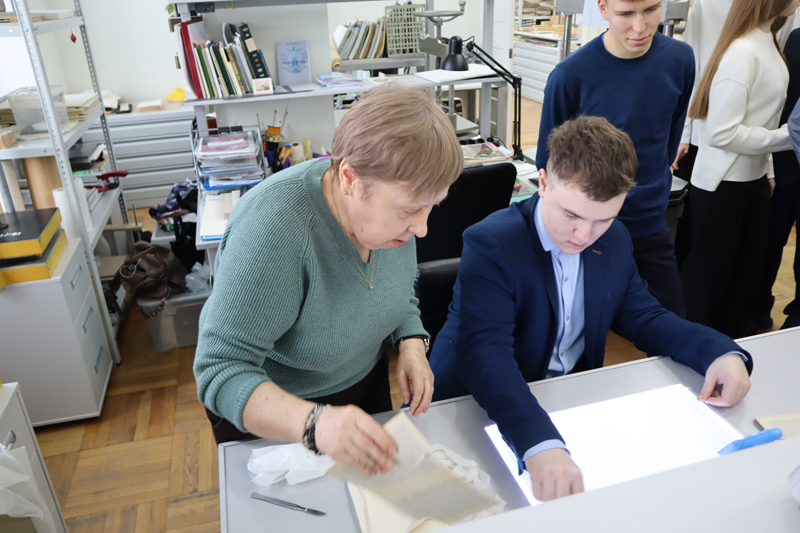 Школьники смогли попробовать свои силы в реставрационных процессах, рассмотрели структуру бумаги под микроскопом. Экскурсия позволила юным гостям оценить всю сложность и важность профессии реставратора.