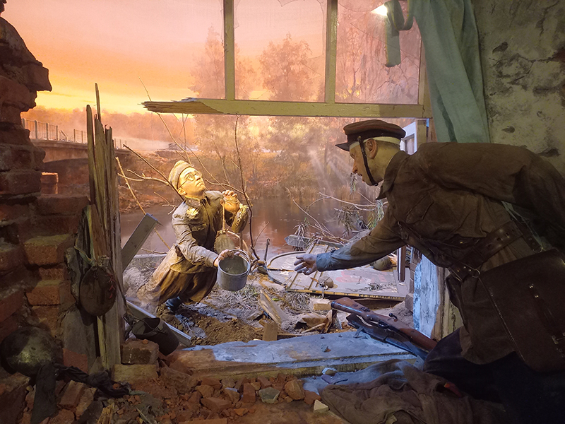 Реконструированы сцены обороны Брестской крепости 1941 года и освобождения Великого Новгорода 1944 года и другие. Технологии виртуальной реальности переносят в библиотеку блокадного Ленинграда, цеха эвакуированных заводов, в военные госпитали, позволяют почувствовать атмосферу военных театров. Масштаб и детализация поражают: каждая деталь, каждый экспонат, каждая сцена продуманы до мельчайших нюансов, воспроизводя дух и атмосферу военного времени с поразительной точностью. Искренность и профессионализм экскурсоводов, рассказывающих о событиях Великой Отечественной войны, добавляют еще больше эмоциональности и глубины восприятию экспозиции.