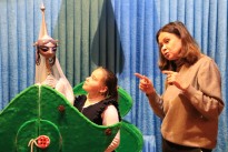 Гости театра познакомились с разными видами профессиональных кукол и системами их управления. Кукла-марионетка приводится в движение при помощи нитей. Конструкция куклы перчаточного типа состоит из головы на пальце и перчатки на руке кукловода. Гапитно-тростевые куклы приводят в движение с помощью трости, на которую надета кукла. Планшетные куклы умеют ходить по полу, по настилу сцены, который называется в театре «планшет». Все дети попробовали себя в роли кукловодов. За сценой ребята увидели пульт управления помощника режиссера. Всех очень удивила сложность механизмов, обеспечивающих техническое оснащение спектаклей.