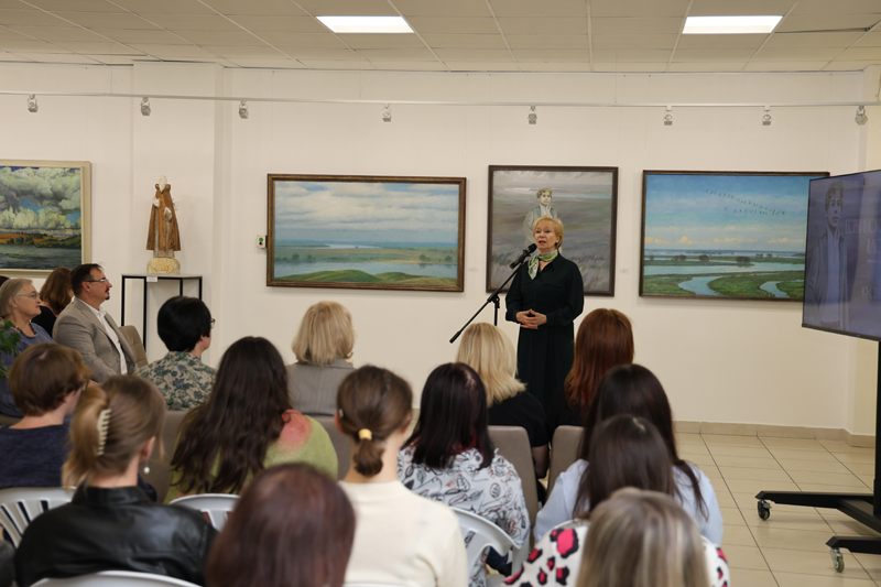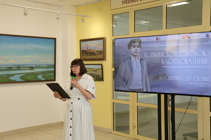 К участникам выставки обратилась заслуженный работник культуры РФ, член Правления Рязанской областной организации ВТОО «Союз художников России» Татьяна Петровна Власова. Татьяна Петровна отметила, что выставка позволяет погрузиться в поэзию Есенина. Каждая строка поэта – это живопись, которую можно увидеть в цвете.