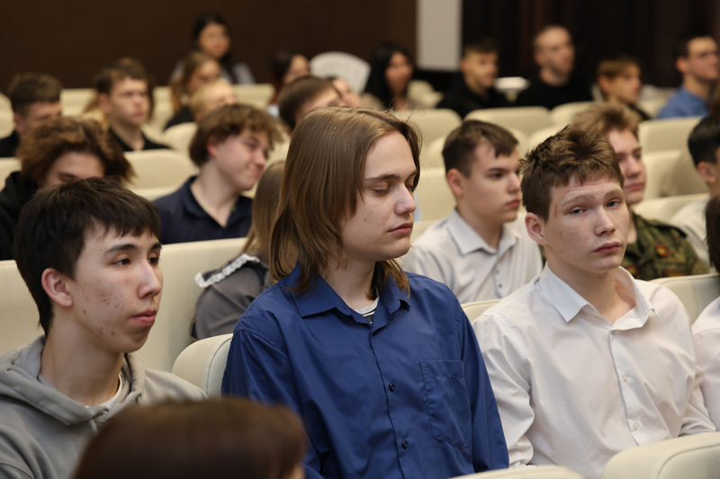 Открыл мероприятие Сергей Владимирович Рудь, начальник штаба регионального отделения Всероссийского детско-юношеского военно-патриотического общественного движения «Юнармия», гвардии капитан запаса воздушно-десантных войск. Сергей Владимирович поприветствовал ребят и рассказал о своем пути офицера-десантника, о трудностях выбора профессии. Сергей Владимирович стал модератором встреч.