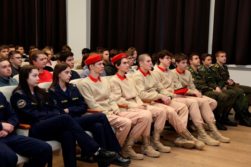 Встречу продолжила лекция преподавателя общества «Знание» Артура Михайловича Абеляна, доцента РГВВДКУ имени генерала армии В.Ф. Маргелова, боевого офицера, участника специальной военной операции, участника проекта «ГЕРОИ62», гвардии полковника воздушно-десантных войск. Артур Михайлович рассказал об истории, структуре, учебном плане и учебных кафедрах, факультетах легендарного училища – единственного в мире высшего военного учебного заведения, выпускающего офицеров-десантников. Артур Михайлович дополнил лекцию видеофильмом. Ребята – будущие абитуриенты смогли увидеть, как проходит обучение курсантов в аудиториях и в полевых условиях в специальном учебном центре «Сельцы» в Рязанской области, какие учебные боевые задачи ставятся перед курсантами и как они их решают.