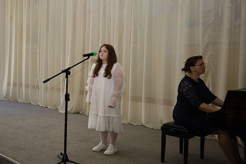 В исполнении юных учащихся Детской школы искусств № 1 прозвучали лучшие стихотворения и песни о советских воинах, ветеранах, об их самоотверженном подвиге. Проникновенные музыкальные номера подарили вокалисты Анна Пименова, Екатерина Пименова, Мария Бобылева, София Бирюкова, Иван Бурдин, Анастасия Гудкова, Виктория Паршина, Анастасия Шатохина, Елизавета Кудинова, Любовь Медведева. В исполнении старшего хора (руководитель Н. Г. Юдаева) прозвучали известные произведения «Матерям погибших героев» К. Ибряева и «День Победы» Д. Тухманова.