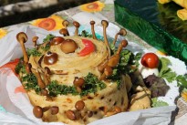 Уникальная самобытность рязанских сел и деревень отразилась в кулинарных шедеврах, сделанных из блинов участниками фестиваля: тут и сельские подворья, и шкатулки, и фигурки людей и животных, и «пеньки» с грибами, и даже портрет Царевны Несмеяны. Старания мастеров не прошли даром. Выставленные ими на аукционе блюда были проданы за полчаса. Все полученные деньги – 71 900 рублей и 100 долларов – будут переданы Рязанскому дому ребенка, который в этом году отмечает юбилей – 100 лет со дня создания.