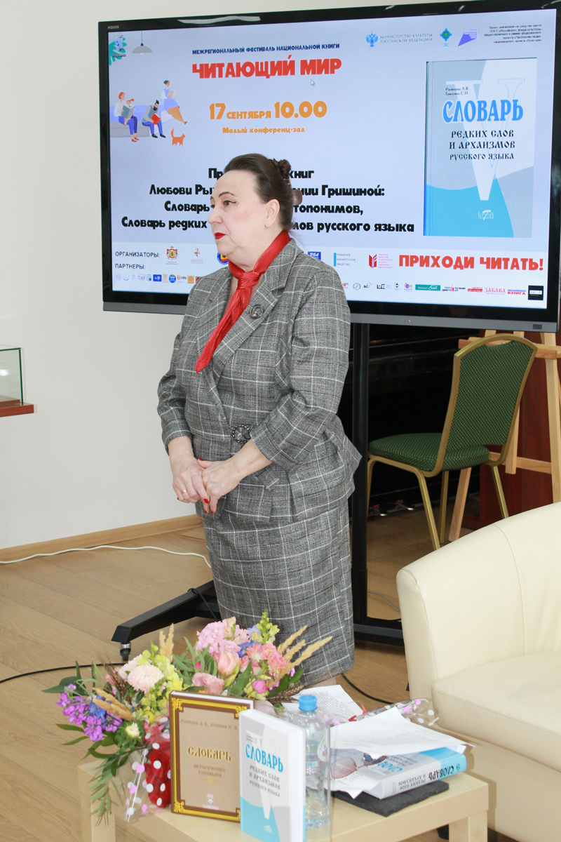 Межрегиональный фестиваль национальной книги «Читающий мир» давно стал местом и поводом для презентации новых книг. Вот и сегодня Любовь Рыжкова-Гришина представила свои новые книги: «Словарь редких слов и архаизмов русского языка» и «Словарь исторических топонимов».