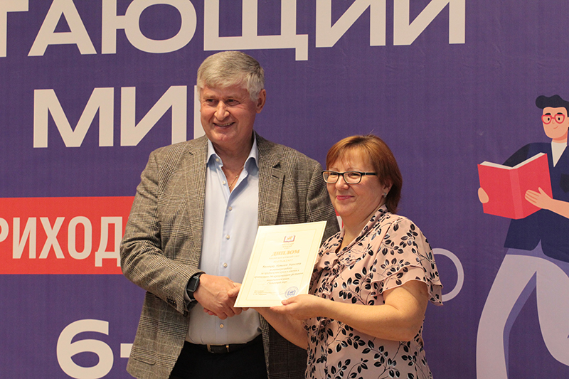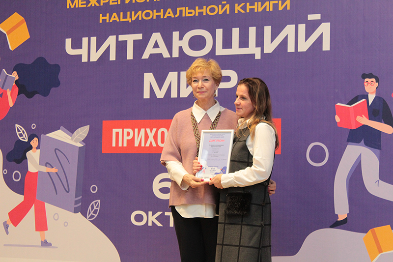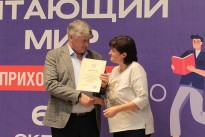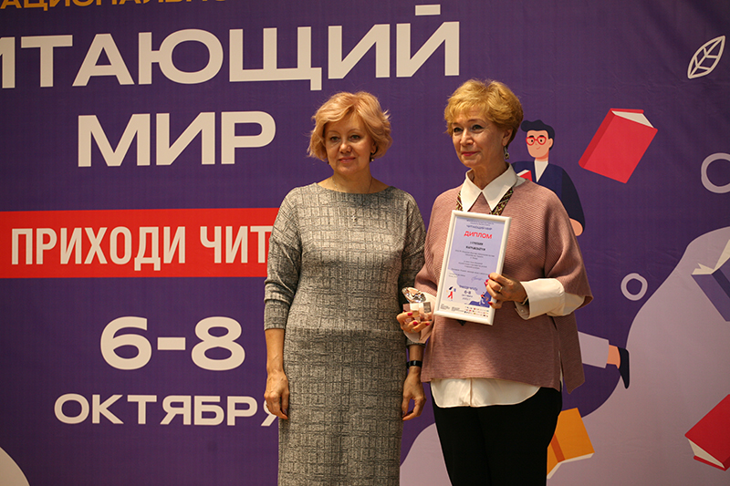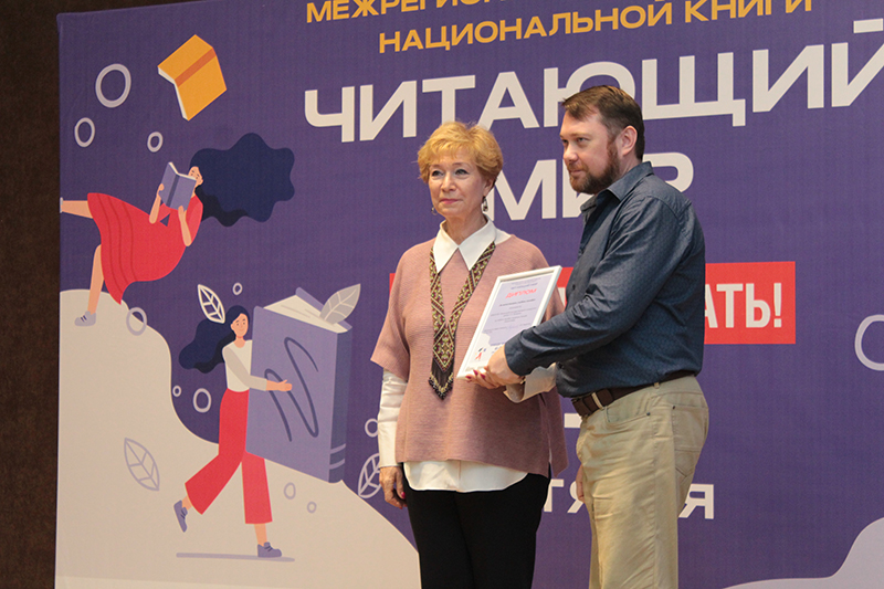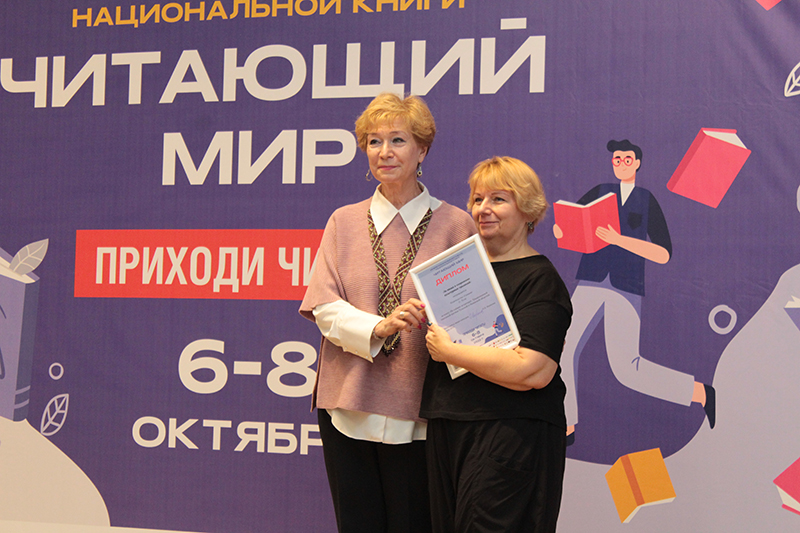 Л.Л. Палько вручил награды Российского книжного союза Н. Н. Гришиной и сотрудникам областной библиотеки имени Горького за активную работу по организации книжных фестивалей в Рязанской области.