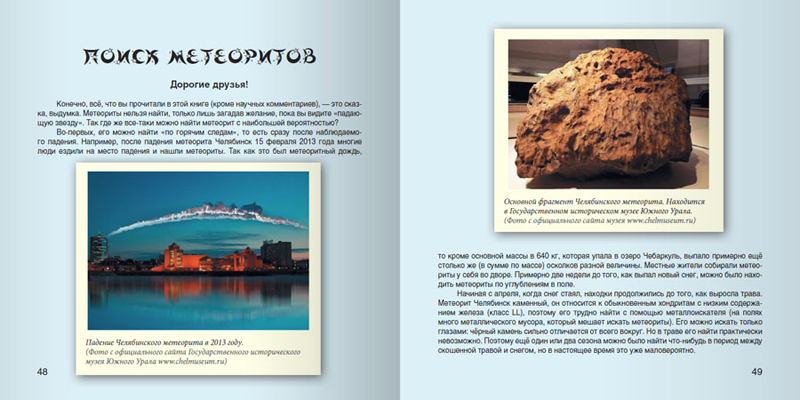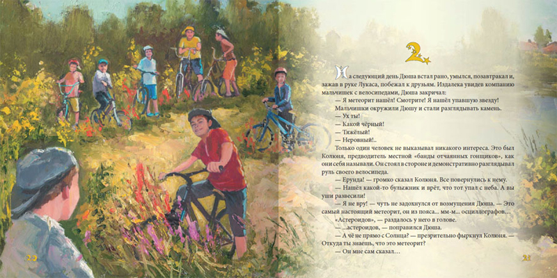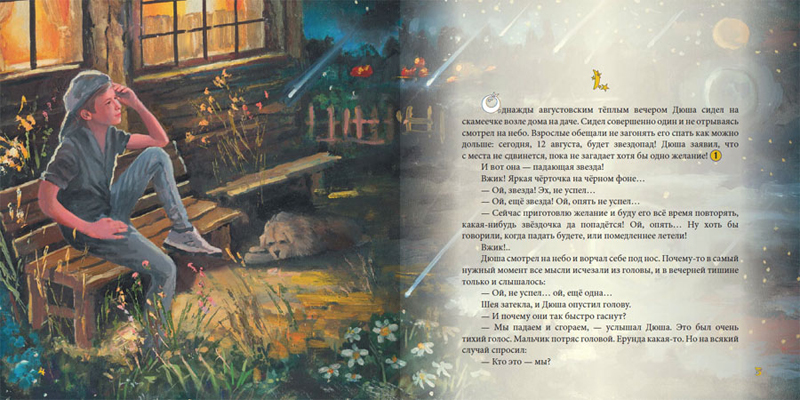 Книга проиллюстрирована эмоциональными и красочными картинами, которые визуально дополняют и расширяют эту фантастическую историю. Заключительная глава книги о том, где и как искать метеориты, будет прекрасным подарком тем ребятам, которых не только увлечет эта книга, но и позовет на поиски "собственной упавшей звезды".