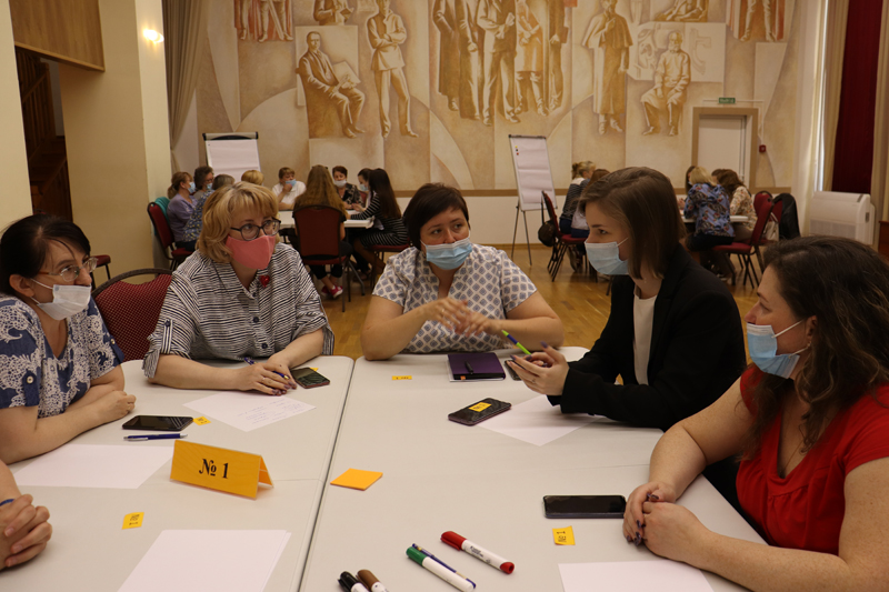 Ольга Тарасова, модератор форсайт-сессии, озвучила ее цели и задачи, обозначила маршрут работы, ознакомила с правилами группового взаимодействия. На мероприятии участники разделились на четыре группы: библиотекари, педагоги, родители и учащиеся. В ходе обсуждений были затронуты проблемы детского чтения; определялись форматы совместных мероприятий, направленных на активизацию детского чтения; разрабатывались пути развития школьной библиотеки, ее взаимодействия с семьей и школой.