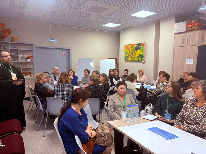 Часть программы, экскурсия и знакомство с опытом работы воскресной школы «Сретение» и школы семьи «Родная душа» проходила в храме Покрова Пресвятой Богородицы. Там же состоялась еще одна секция, посвященная совершенствованию преподавания курса «Основы православной культуры». Практической частью площадки стали два мастер-класса.