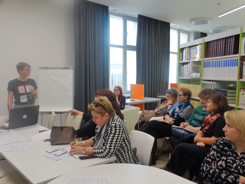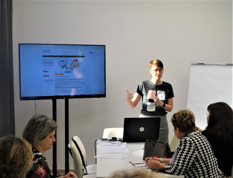 Дарья Юрьевна рассказала коллегам о своем участии в съезде преподавателей французского языка во Французском институте, проследив положительную тенденцию к развитию двуязычия не только в странах Европы, но и в России, что, безусловно, повышает статус французского языка как иностранного. Учителя и преподаватели также узнали о конкурсах, проходящих при поддержке Французского института, и профессиональных курсах по повышению квалификации для преподавателей и учителей французского языка, организуемых институтом.