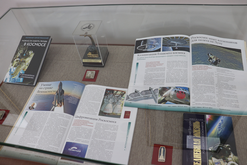 В экспозиции представлены издания из фонда библиотеки им. Горького, среди которых особый интерес вызывают прижизненные издания нашего земляка, выдающегося русского изобретателя и теоретика космонавтики Константина Эдуардовича Циолковского, письмо депутата Верховного Совета СССР Юрия Алексеевича Гагарина с его автографом, а также периодические издания 1961 года, повествующие о знаменательном событии – первом полете человека в космос. Яркие достижения советской космонавтики нашли свое отражение в плакатах 50 – 60-х годов прошлого века.