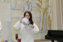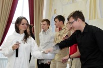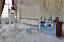 Учащиеся с интересом слушали рассказ и смотрели фрагменты из документальных фильмов о незаурядной личности. Научно-познавательным дополнением программы стало увлекательное представление от рязанской команды «Чемодан чудес». Шоу-магистры заинтересовали ребят зрелищными опытами по химии, превратив эту встречу в волшебство.