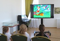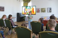 Вместе с сотрудником кафедры детской литературы мальчишки и девчонки отправились в увлекательное путешествие по страницам произведений русских писателей-сказочников. Весёлые загадки помогли юным участникам вспомнить знакомые с детства сказки А. С. Пушкина, В. А. Жуковского, А. Н. Толстого, С. Т. Аксакова, П. П. Ершова, Е. Л. Шварца.
