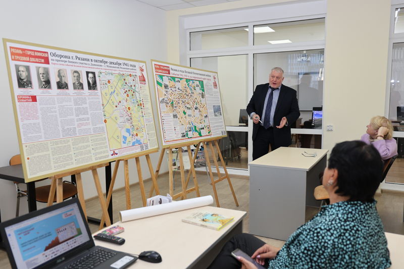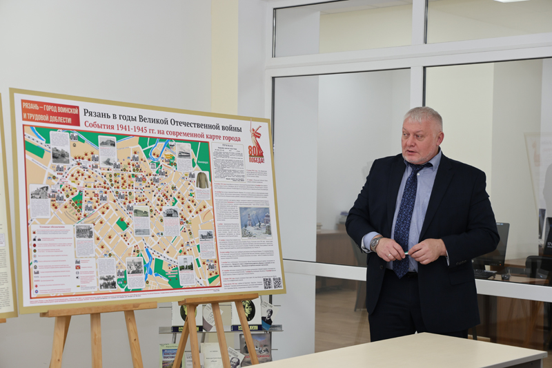 В рамках Межрегионального фестиваля национальной книги «Читающий мир» состоялась презентация карт, подготовленных к 80-летию Великой Победы, при создании которых составителями была предпринята попытка объединить различные сведения как военной, так и гражданской истории в одной плоскости. Издания представил один из участников авторского творческого коллектива – член Рязанского отделения Российского военно-исторического общества и Топонимической комиссии города Рязани Д.Ю. Володин.