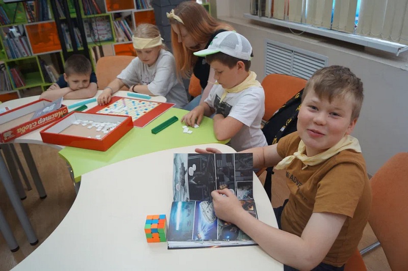 Ребята занимали себя настольными играми, читали книги и комиксы, резвились в игровой комнате. Сотрудники устроили экскурсию по библиотеке с посещением редкого фонда.
