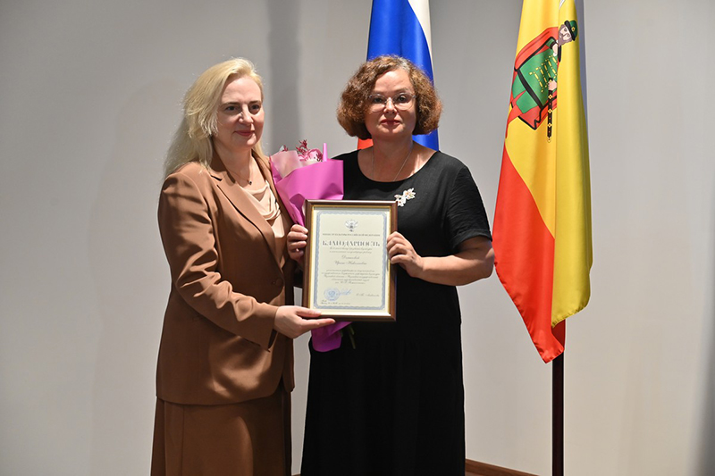 В библиотеке состоялась рабочая встреча со специалистами сферы культуры региона, в ходе которой Жанна Алексеева вручила руководителям и сотрудникам областных музеев-заповедников, артистам театров, представителям ведущих творческих коллективов области и муниципальных управлений культуры благодарности Министра культуры РФ за большой вклад в развитие отрасли и плодотворную работу. Она подчеркнула, что всестороннее развитие культуры в регионе находится на очень качественном уровне.