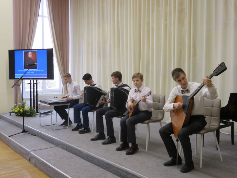Ведущая мероприятия Надежда Ирхина рассказала зрителям о творческом пути знаменитого юбиляра. Учащиеся Даниил Степанов, Маргарита Пронькина, Владислав Пуяшов, Вероника Зуйкова прекрасно исполнили фортепианные произведения Александра Сергеевича.