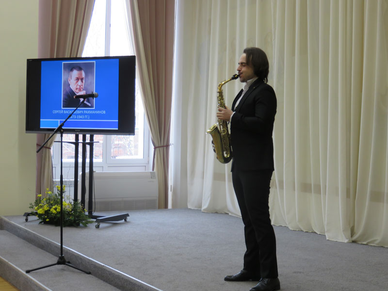 В этом году отмечается юбилей ещё одного великого композитора – Сергея Васильевича Рахманинова. Отличным завершением встречи стало выступление преподавателя по классу саксофон Романа Наумца, который исполнил «Вокализ» С. Рахманинова.
