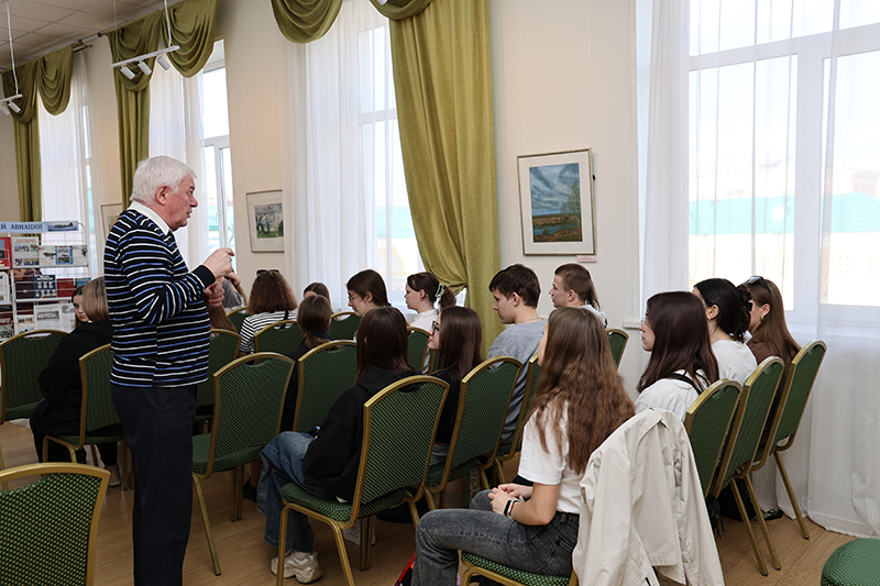 Сергей Михайлович познакомил юных краеведов с историей и развитием Дальней авиации, рассказал о ее первых самолетах, авиаконструкторах И.И. Сикорском, А.Н. Туполеве, С.В. Илюшине.