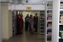 Посетителям посчастливилось исследовать лабиринты самого таинственного места библиотеки – отдела хранения основного фонда, где они познали принципы сохранности сокровищ книжных полок. Участники экскурсии услышали рассказ об автоматической системе пожаротушения, о способах ликвидации аварийных ситуаций в библиотеках. Им довелось увидеть и сравнить книги, журнальные и газетные подшивки различных весовых объемов и форматов. И еще им удалось познакомиться с работой доставочной и пылеочистительной техники отдела. По словам гостей, экскурсия получилась необыкновенно насыщенной и интересной!