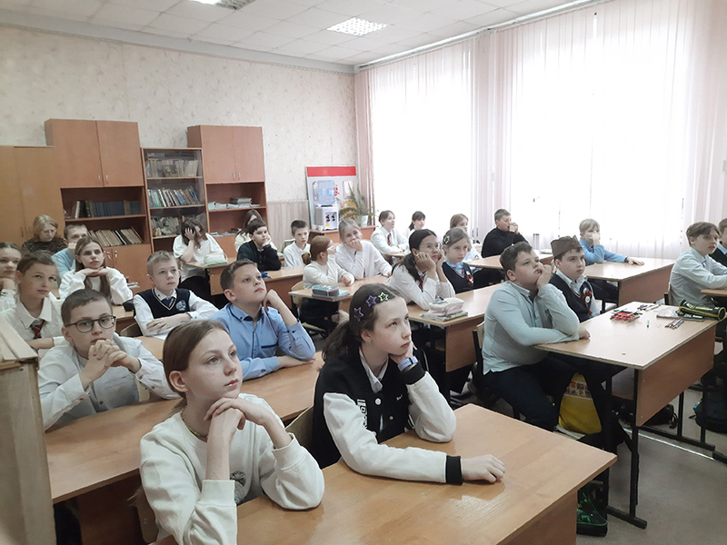 Накануне праздника 9 Мая ученики 5 класса рязанской школы № 19(25) познакомились с художественными полотнами, созданными во время Великой Отечественной войны. Интерактивную программу провели сотрудники Центра литературы по искусству в рамках реализации цикла мероприятий «Искусство против войны», приуроченных к 80-й годовщине Победы советского народа в Великой Отечественной войне и в Год защитника Отечества.
