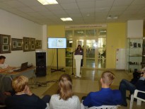 Главный библиотекарь универсального читального зала В.Н. Волкова в ходе экскурсии акцентировала внимание аудитории на уникальных прижизненных изданиях произведений Л.Н.Толстого, дореволюционных мемуарах о жизни писателя, его дневниках, хранящихся в редком фонде библиотеки.