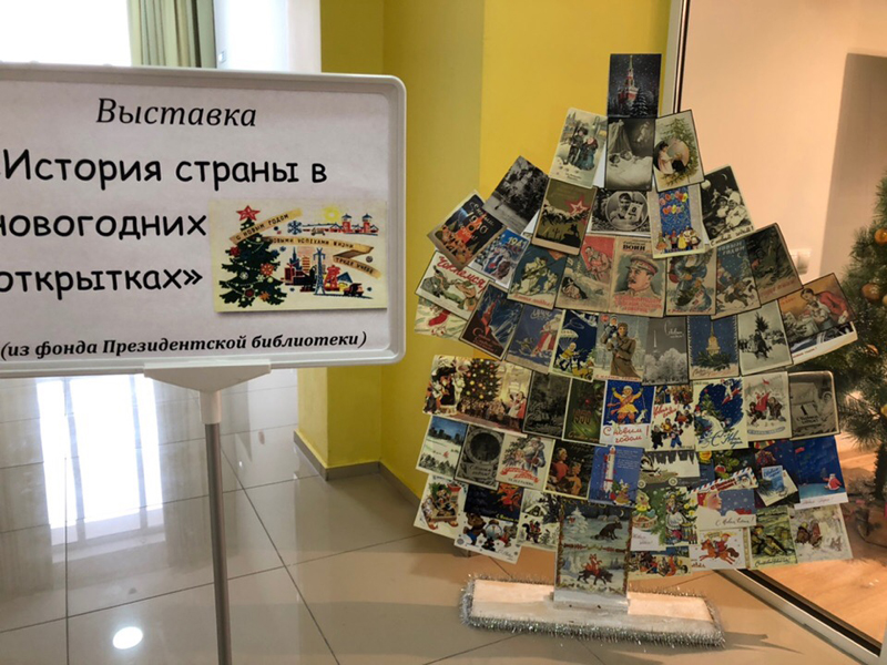 Необычная елка появилась в региональном центре Президентской библиотеки. Она представляет собой «дерево» из новогодних открыток. В таком нетрадиционном виде сотрудники центра оформили выставку документов из фонда Президентской библиотеки.