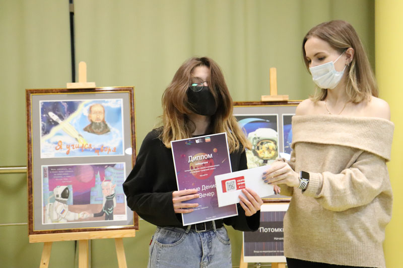 В номинации «Цифровой плакат» победили работы: Юлии Зарковой (16 лет), Варвары Замуры (14 лет), Анны Тупициной (16 лет). Специальный приз в номинации «Профессионально о космосе» получили студенты Рязанского художественного училища им. Г.К. Вагнера Алина Вечер, Елена Мордашева, Софья Пахомова.