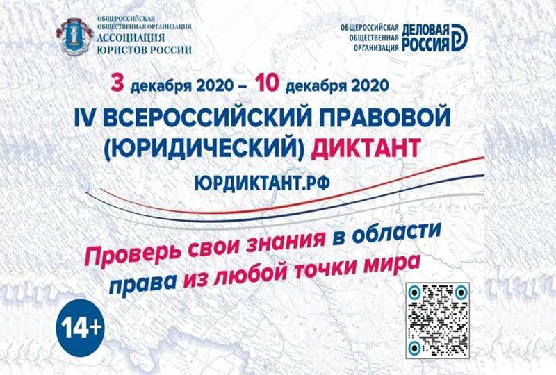 С 3 по 10 декабря 2020 года в онлайн-режиме пройдет IV Всероссийский правовой (юридический) диктант.