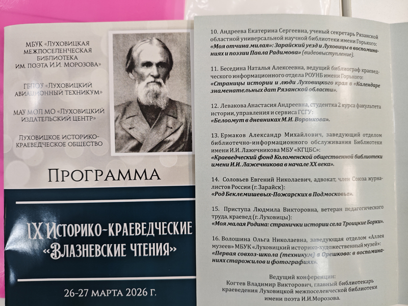 26 марта в Луховицкой межпоселенческой библиотеке имени И.И. Морозова прошли IX Влазневские чтения.