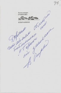 В фонде Рязанской библиотеки имени Горького имеются и другие книги А.В. Очировой: «Сочинения» в трех томах, «В начале мира было слово…», «Пусть недосказанность останется», «Полет над городом вдвоем».