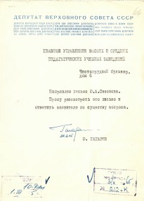 В фонде Рязанской областной библиотеки имени Горького в «Коллекции автографов» хранится письмо, которое Юрий Алексеевич Гагарин написал будучи депутатом Верховного Совета СССР. Бланк с машинописным текстом заверен его собственноручной подписью. Письмо было передано в наш фонд из личной библиотеки Мохначевой Марины Петровны. Марина Петровна Мохначёва (1952 – 2014) – российский историк, доктор исторических наук, профессор кафедры истории России Российского государственного гуманитарного университета, член Союза краеведов России, Союза журналистов России.