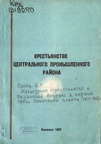 - Общественная мысль и классовая борьба в центральных губерниях России во второй половине XIX века : межвуз. сб. науч. тр. / Рязан. гос. пед. ин-т им. С. А. Есенина; [редкол.: И. П. Попов (отв. ред.) [и др.]. – Рязань : РГПИ, 1988. – 135, [1] с.