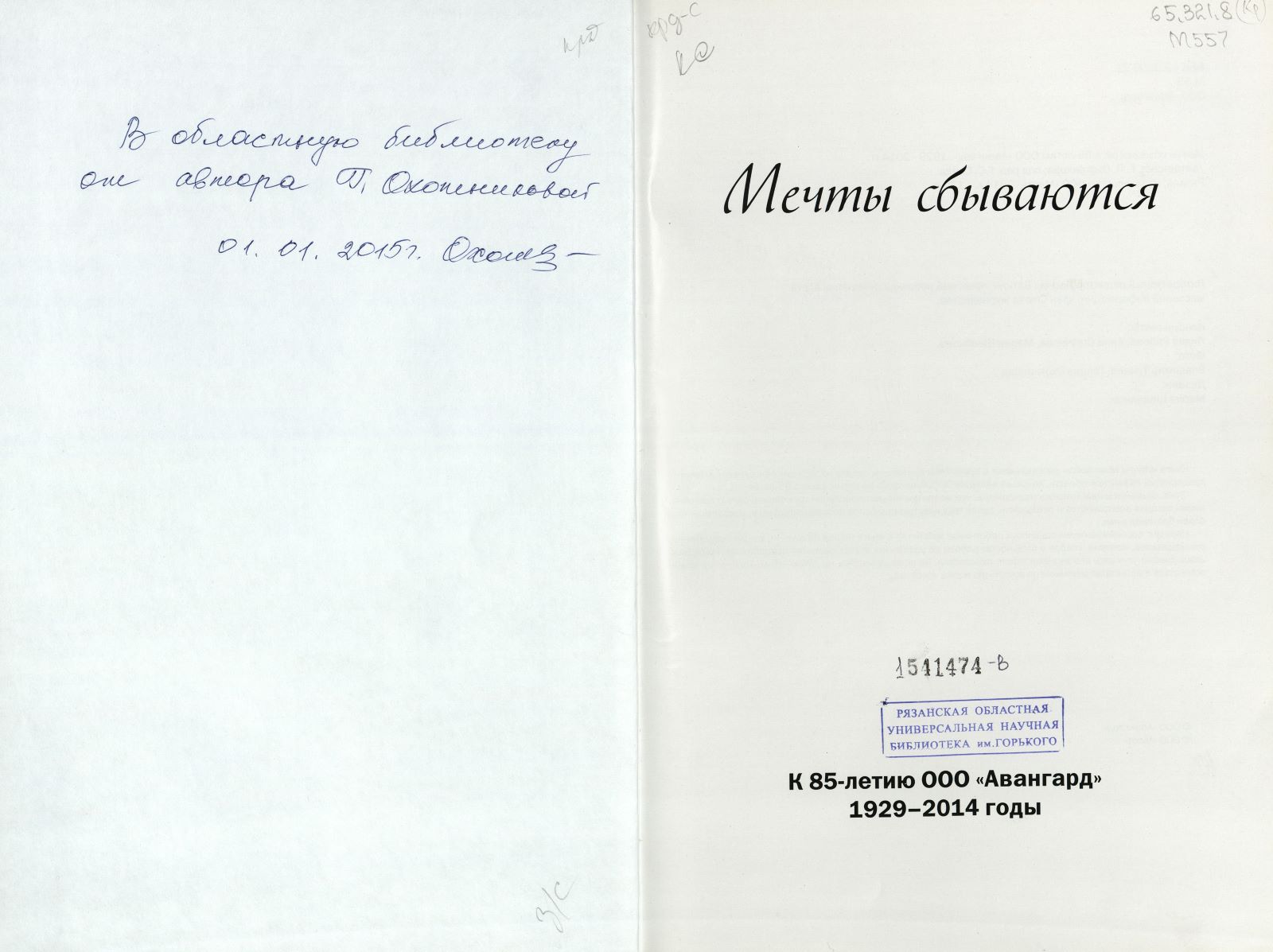 В «Коллекции автографов» областной библиотеки есть несколько книг с дарственными надписями Г.П. Охотниковой, адресованными РОУНБ имени Горького. Эти издания рассказывают о прошлом и настоящем одного из ведущих сельскохозяйственных предприятий Рязанской области, каким является ООО «Авангард», о боевом и трудовом подвиге жителей сел и деревень Тюшевского сельского поселения, о детях войны – живых свидетелях жесточайших событий, которые пришлось пережить всей стране в годы Великой Отечественной войны.