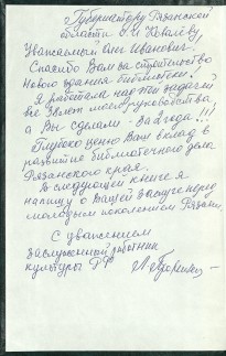 Дарственная надпись на её книге «Главная библиотека рязанского края: из истории Рязанской областной универсальной научной библиотеки имени Горького» адресована губернатору области в 2008–2017 годах Олегу Ивановичу Ковалеву, решившему вопрос о строительстве нового корпуса библиотеки.