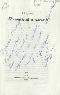 - Пронина Л. А. Полонский и время / Л. А. Пронина. – Рязань : Поверенный, 2000. – 150 с., [8] л. ил. : портр. – (Золотая серия).
