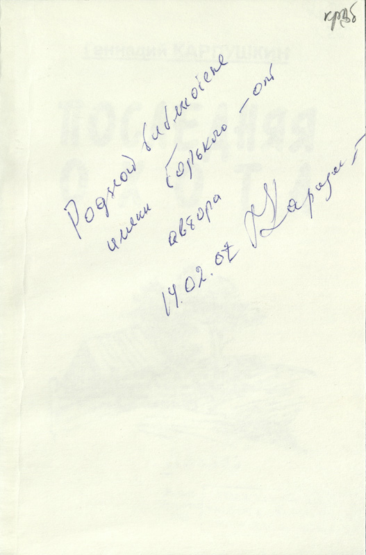 В «Коллекции автографов» «Горьковки» есть несколько книг с дарственными надписями автора, адресованными сотрудникам Рязанской областной библиотеки имени Горького и ветерану библиотеки Валентине Васильевне Безугловой, заслуженному работнику культуры РФ, создателю краеведческого отдела и клуба краеведов-исследователей. Валентина Васильевна передала в фонд часть своей личной книжной коллекции.