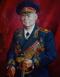 Одной из значимых работ из цикла о войне стал стилизованный в картину-икону Георгия Победоносца на белом коне портрет легендарного героя Великой Отечественной войны Маршала Советского Союза Г.К. Жукова.